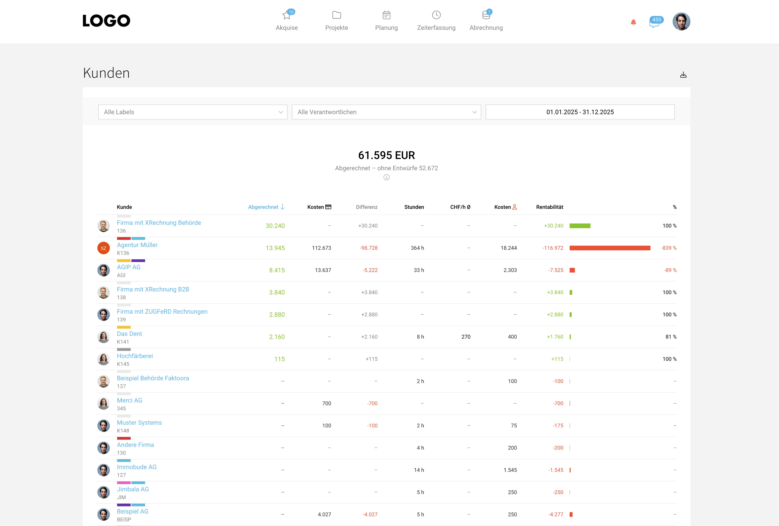 Alle Kontaktdaten, E-Mails, Aufgaben, Angebote, Rechnungen und Projektstatus sind im Kundenprofil gebündelt. So findest du in Sekunden, was du brauchst – ohne manuelle Suche oder Rückfragen im Team.